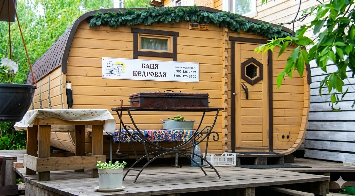- Аромомагия кедра: Баня выполнена из натурального кедра — его аромат расслабляет, снимает стресс и настраивает на нужный лад. Отдых телом и душой!