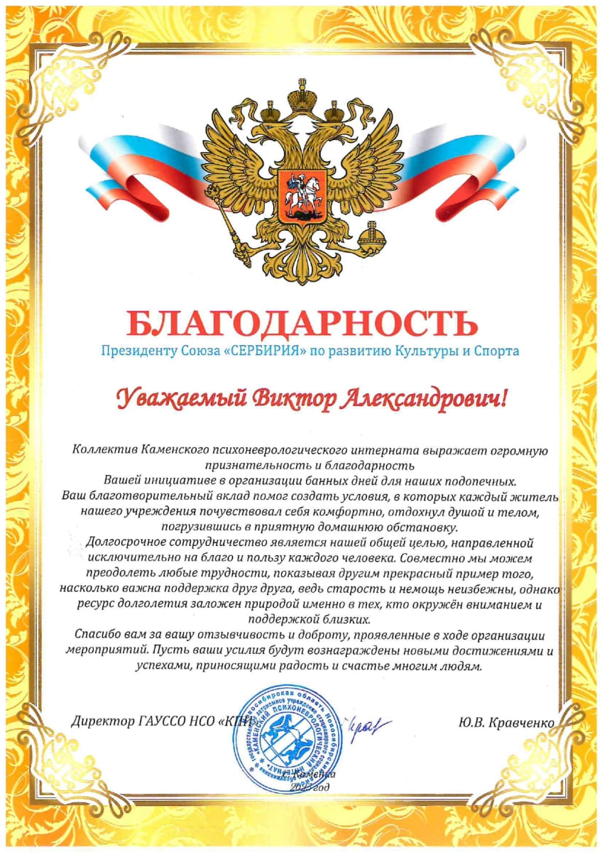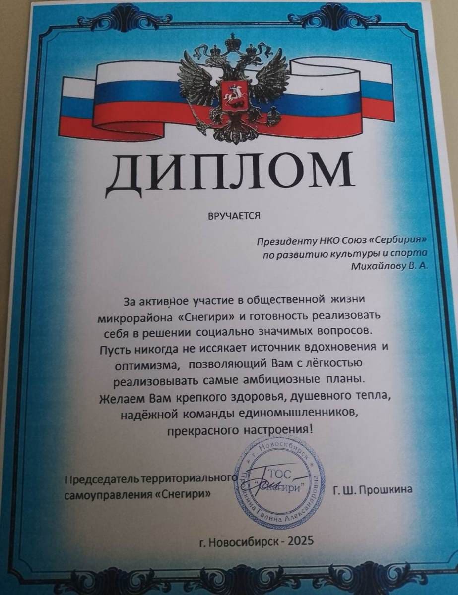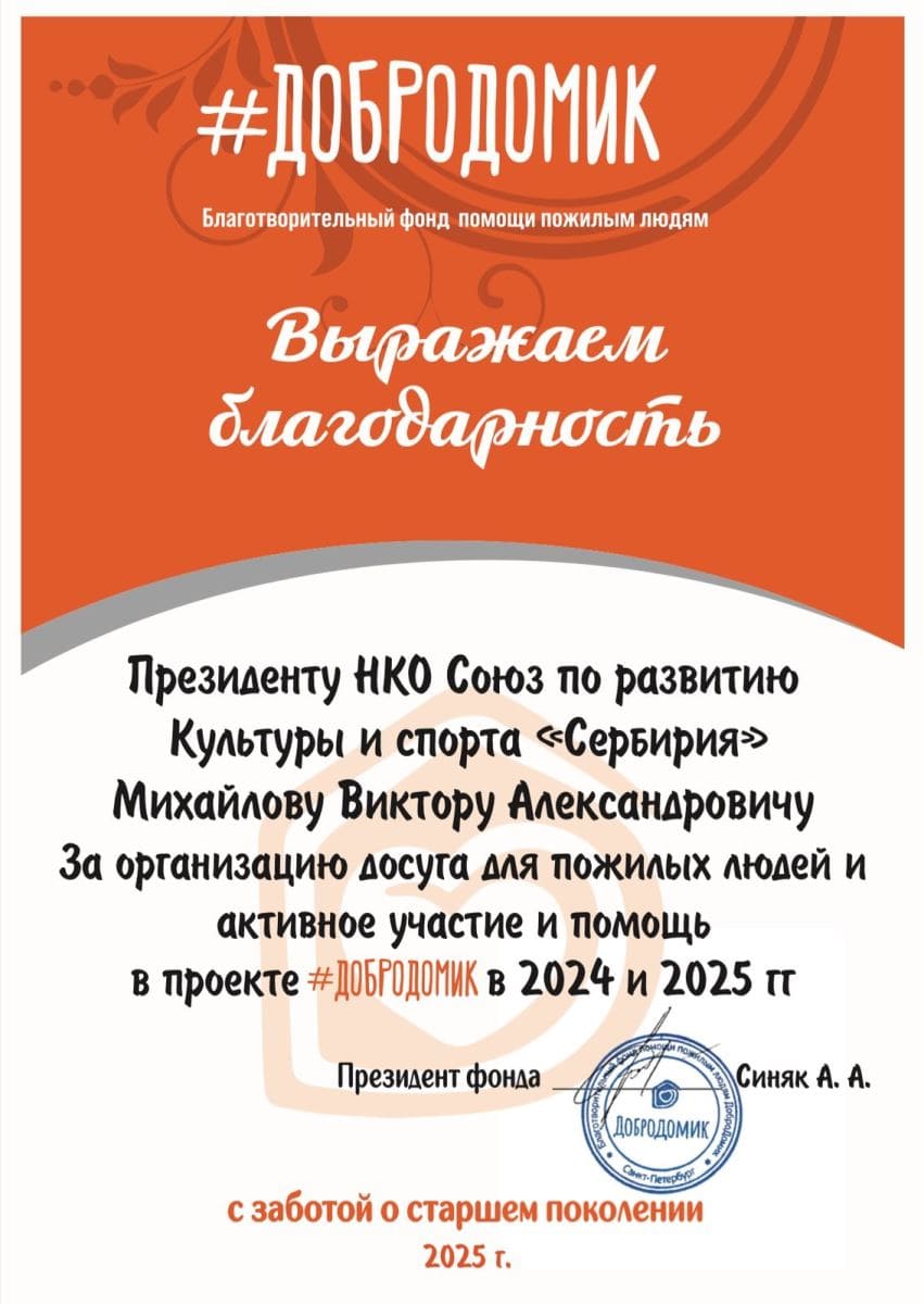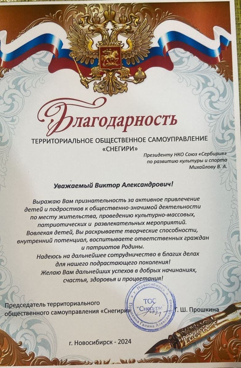 НКО Союз «СерБирия» по развитию культуры и спорта.